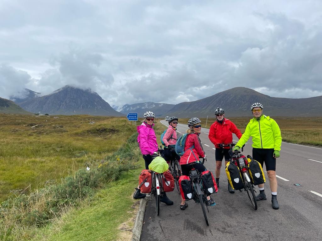 Crack of dawn departure for the girls. Marathon cycle out of Glasgow to Aberfoyle, Callander, Strathyre and over the old railway path and on down to Crianlarich. Ever changing landscape, mountains, locks, spectacular views.